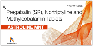 ASTROLINE-MNT is a unique fixed-dose combination of Nortriptyline, Pregabalin, and Methylcobalamin, specially formulated to address the complex challenges of neuropathic pain and related neurological disorders.
